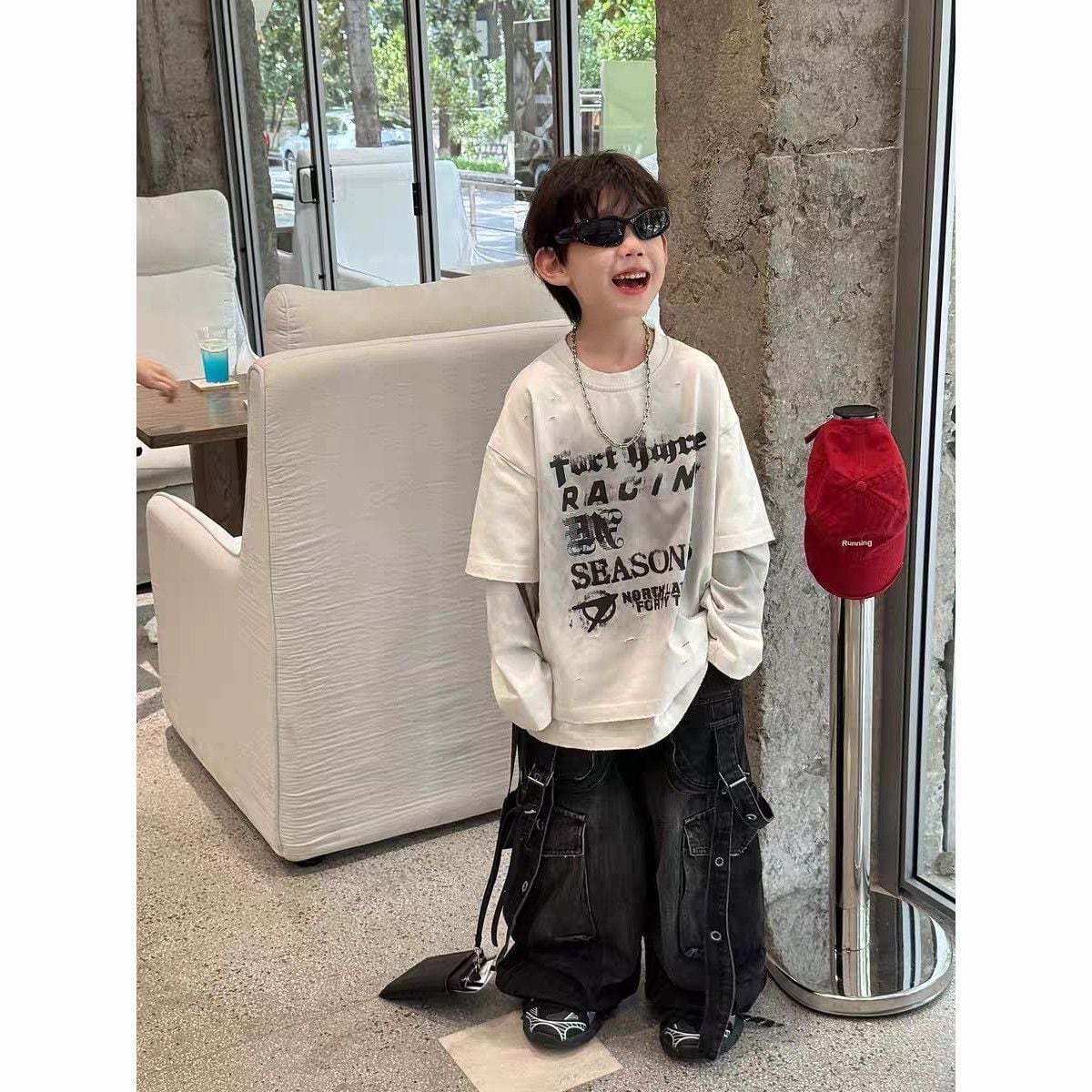 Saturday【2025秋冬コレクション】キッズ 90-170cm フォント重ね着ロンT ユニセックス かっこいい おしゃれ かわいい 韓国 女の子 おしゃれ かわいいおしゃれ小学生 発表会 結婚式 カジュアル フォーマル 中学生 ガールズ子供服 韓国系子供服 sk25092501