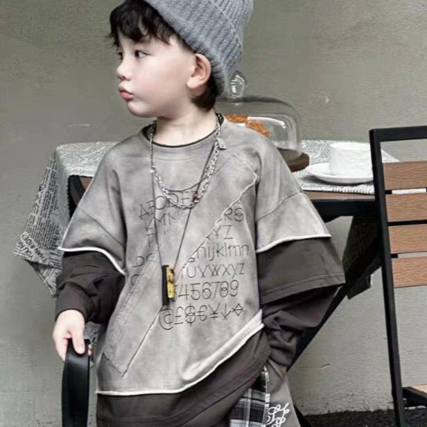Saturday【2025秋冬コレクション】キッズ 90-140cm ヴィンテージ風重ね着ロンT ユニセックス かっこいい おしゃれ かわいい 韓国 女の子 おしゃれ かわいいおしゃれ小学生 発表会 結婚式 カジュアル フォーマル 中学生 ガールズ子供服 韓国系子供服 sk25100201
