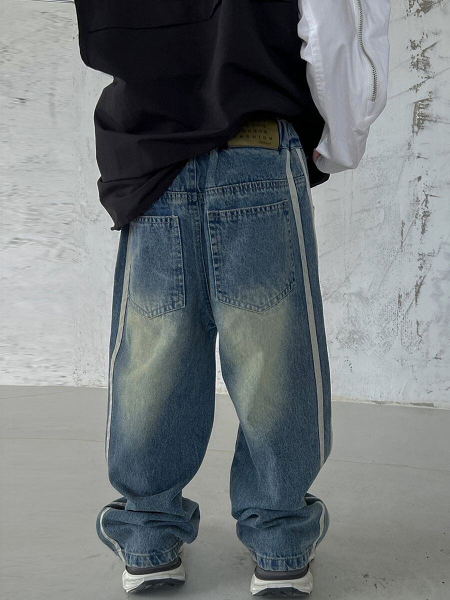 Saturday【2025秋冬コレクション】キッズ 90-160cm サイドラインウオシュッドデニム ユニセックス かっこいい おしゃれ かわいい 韓国 女の子 おしゃれ かわいいおしゃれ小学生 発表会 結婚式 カジュアル フォーマル 中学生 ガールズ子供服 韓国系子供服 sk25101001