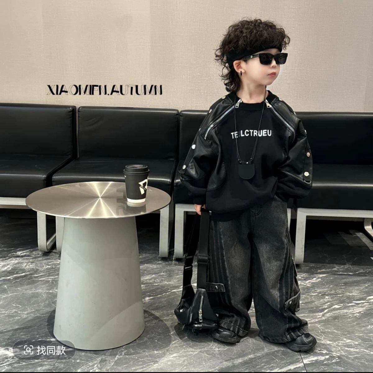 Saturday【2025秋冬コレクション】キッズ 90-150cm ユニセックス ラインデニムパンツ かっこいい おしゃれ かわいい 韓国 女の子 おしゃれ かわいいおしゃれ小学生 発表会 結婚式 カジュアル フォーマル 中学生 ガールズ子供服 韓国系子供服 sk25101402