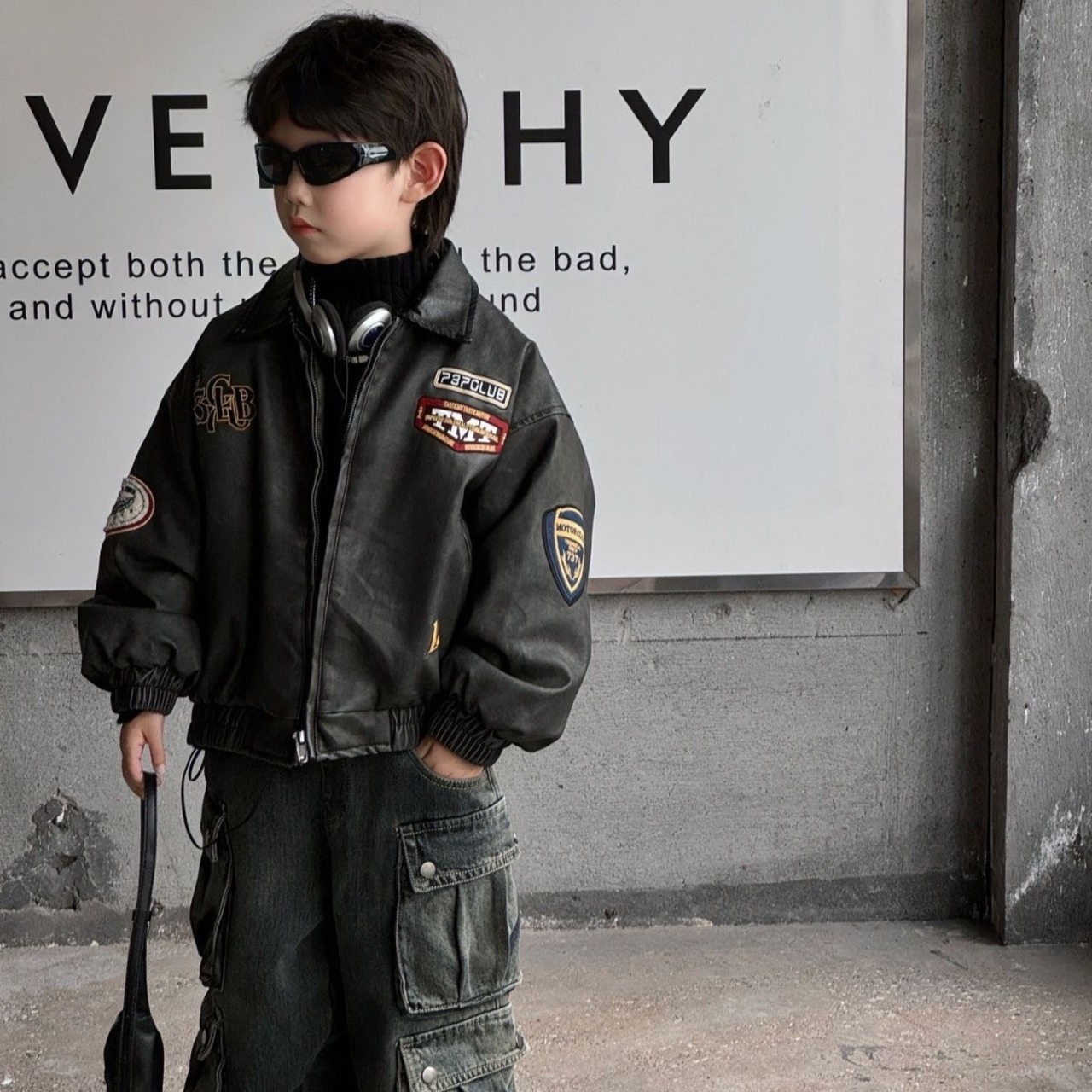 Saturday【2025 秋冬コレクション】キッズ 90-140cm パッチワークウォームレザージャケット ダンス 女の子 かっこいい おしゃれ かわいい 韓国 女の子 おしゃれ かわいいおしゃれ小学生 発表会 結婚式 カジュアル フォーマル 中学生 ガールズ子供服 韓国系子供服 sk25111001