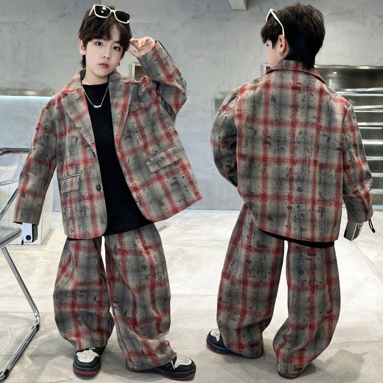 Saturday【2026春夏コレクション】キッズ 120-170cm チェックジャケットパンツ ダンス 女の子 かっこいい おしゃれ かわいい 韓国 女の子 おしゃれ かわいいおしゃれ小学生 発表会 結婚式 カジュアル フォーマル 中学生 ガールズ子供服 韓国系子供服 sk26020801