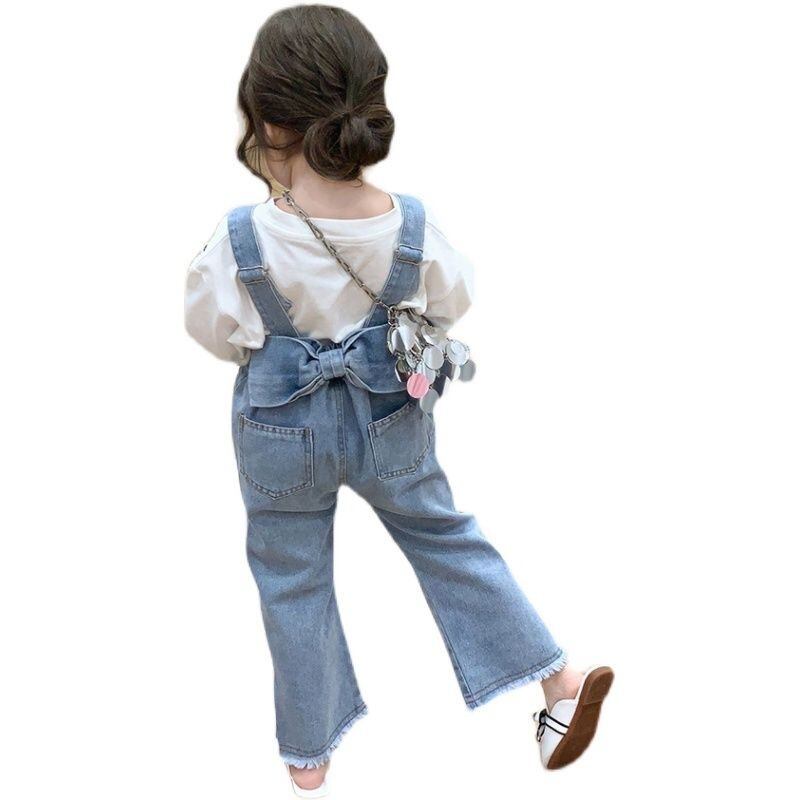 【Saturday】90cm-140cm ガールズ バックリボンデニムサロペット 韓国子供服 おしゃれ kcs23030402