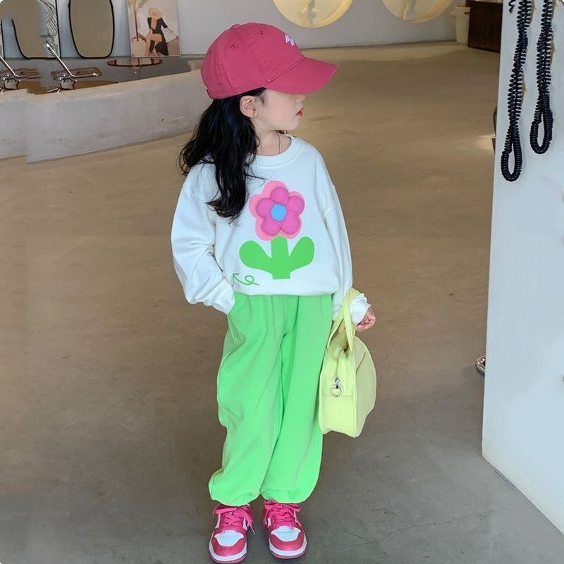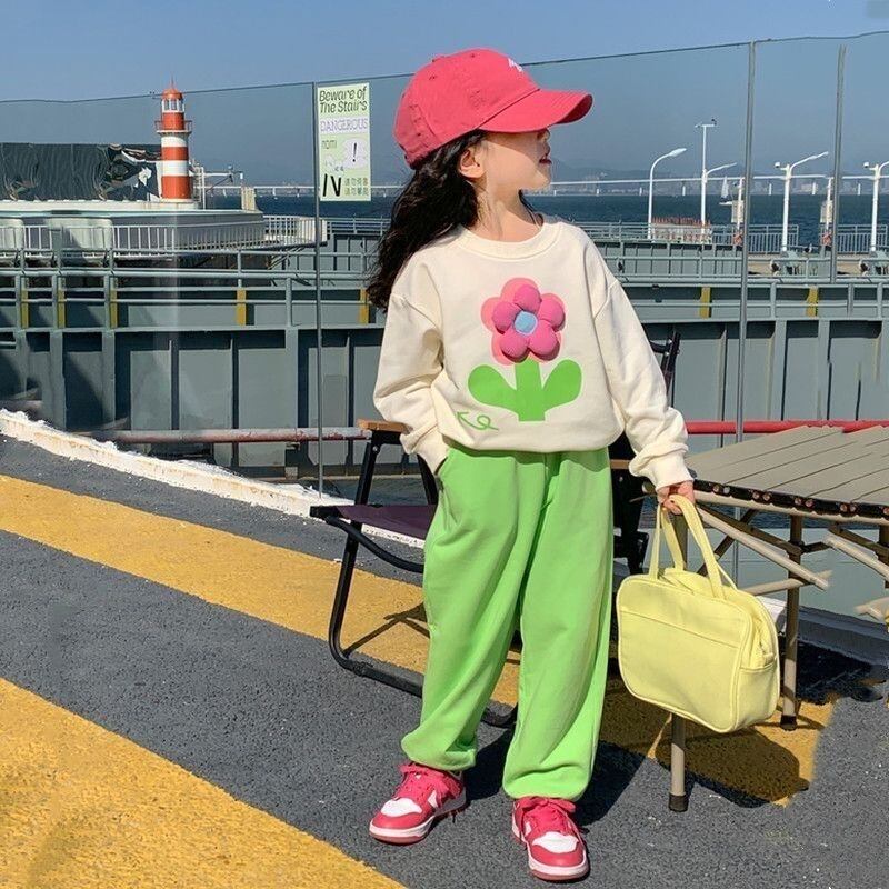 【Saturday】90-140cm キッズセットアップ お花トレーナー&スウェットパンツ ガールズ おしゃれ 小学生通学服 kcs23030801