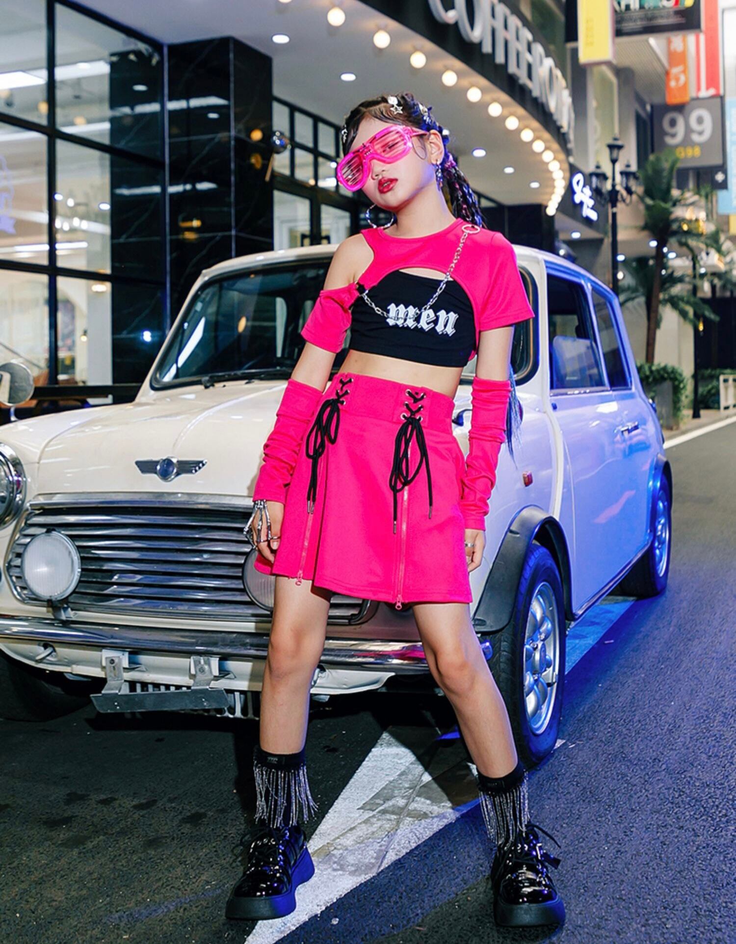 Saturday 120-160cm 5点セット 女の子 ダンス発表会 衣装セット hiphop k-pop 子供ダンス衣装 23032001