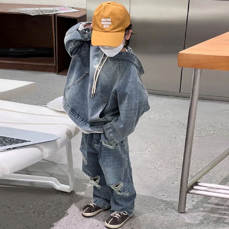 Saturday 100-150cm キッズデニムトレーナー フーディ おしゃれ ストリート ボーイズトレーナー sk23041102