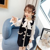 Saturday 90-140cm 子供服 ガールズ 女の子ワンピース ブラウスツイードワンピース 長袖ワンピース sk23100402