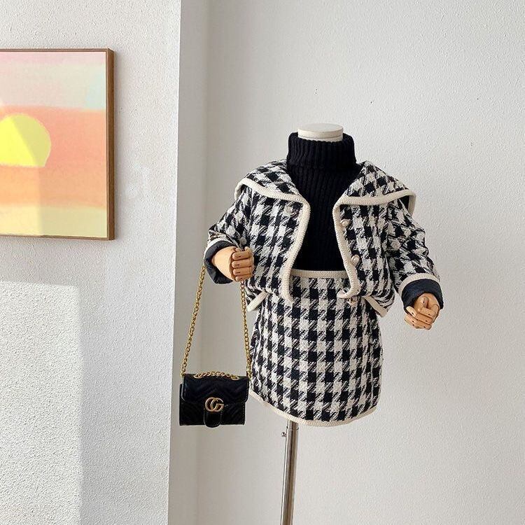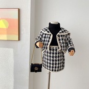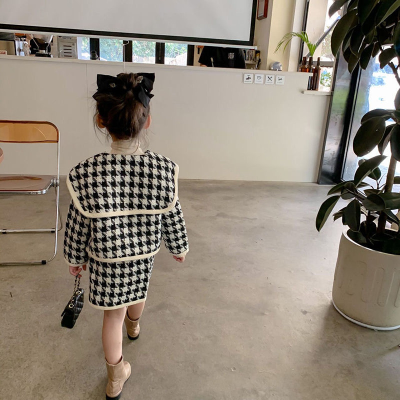 Saturday 90-140cm 千鳥柄セーラ襟 ジャケットスカートセットアップ 女の子子供服 ガールズ子供服 韓国系子供服 sk23100403