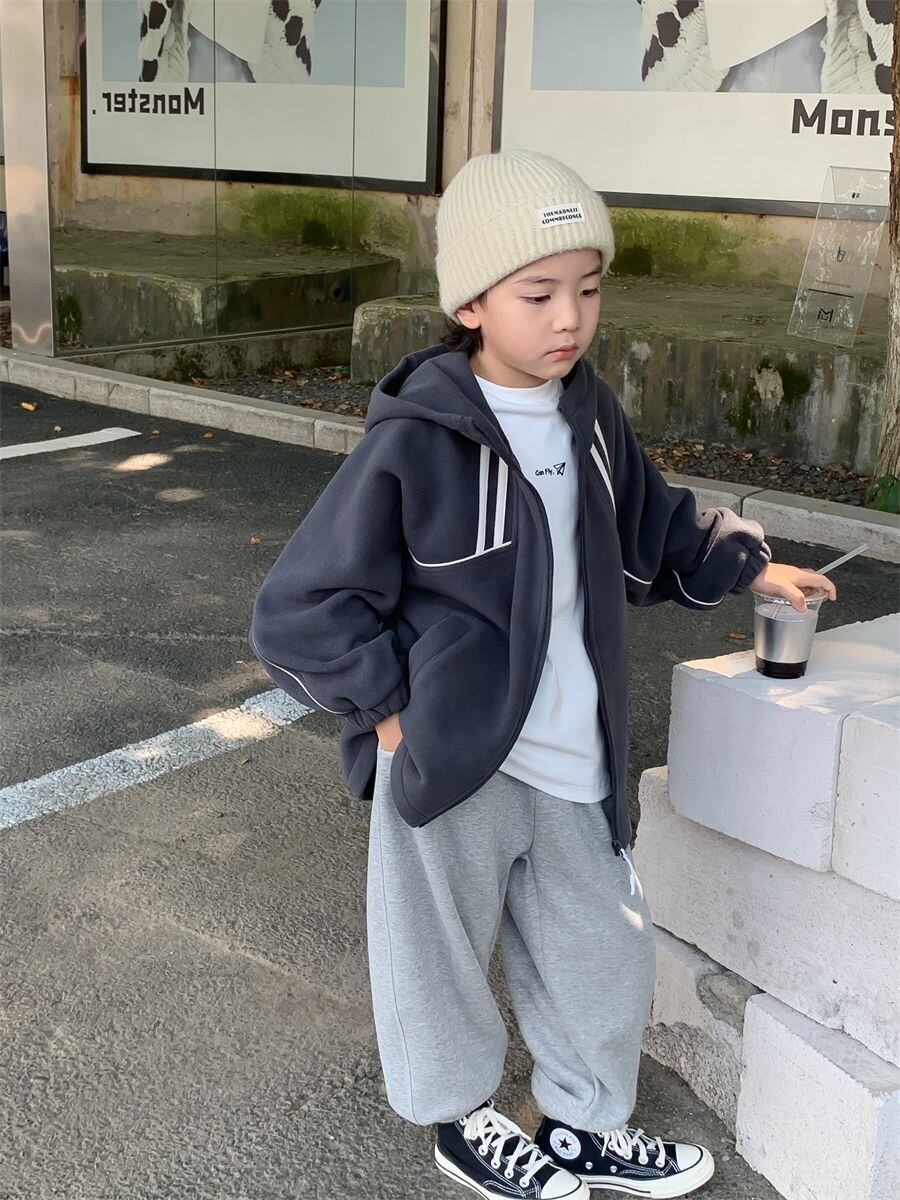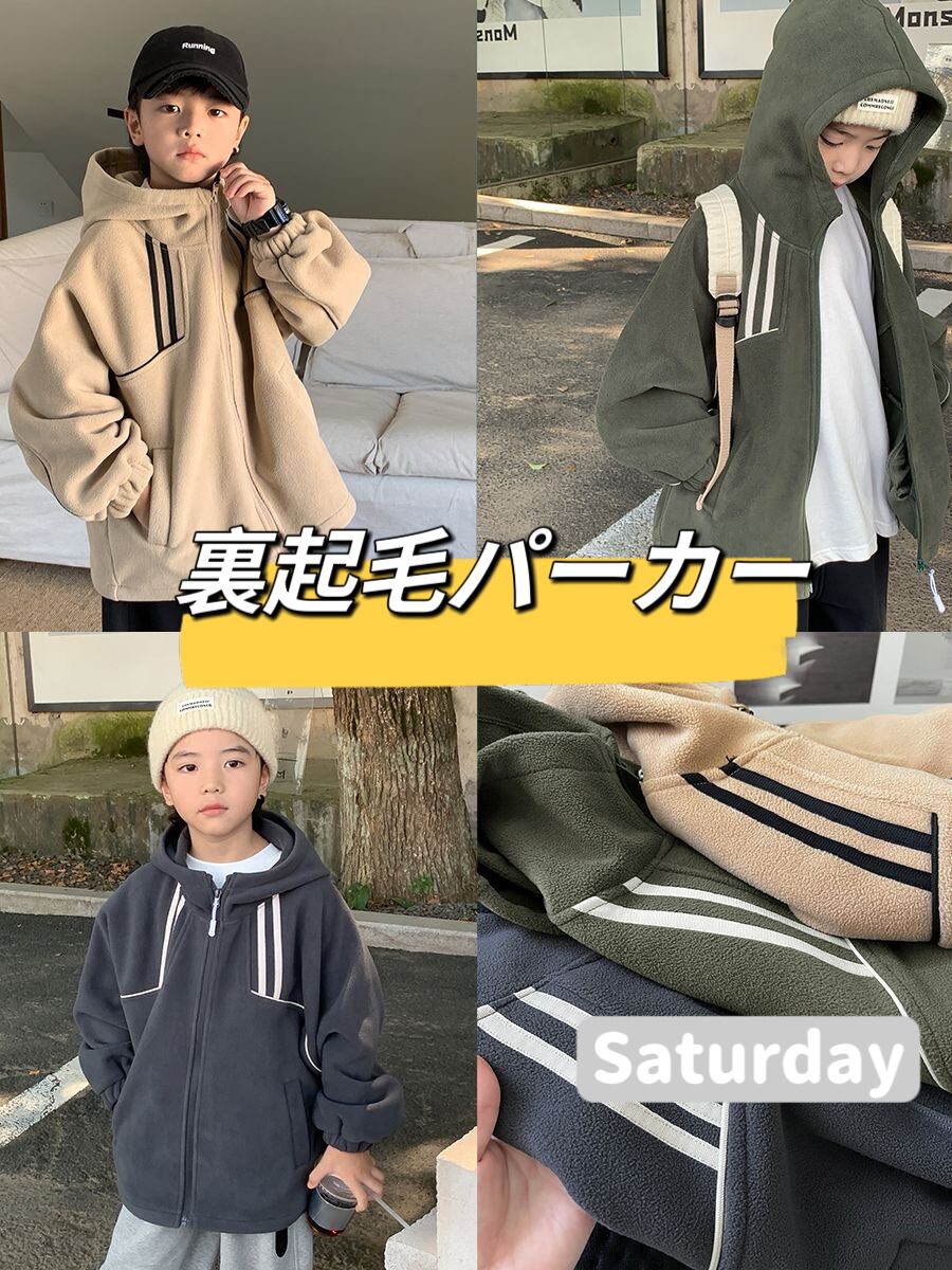 Saturday 100-160cm キッズ 男の子 裏起毛ラインパーカー ジュニアサイズ おしゃれ男の子服 小学生 中学生 ガールズ子供服 韓国系子供服 sk23100803