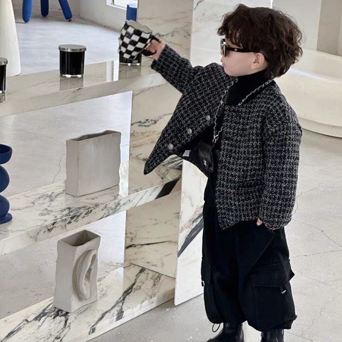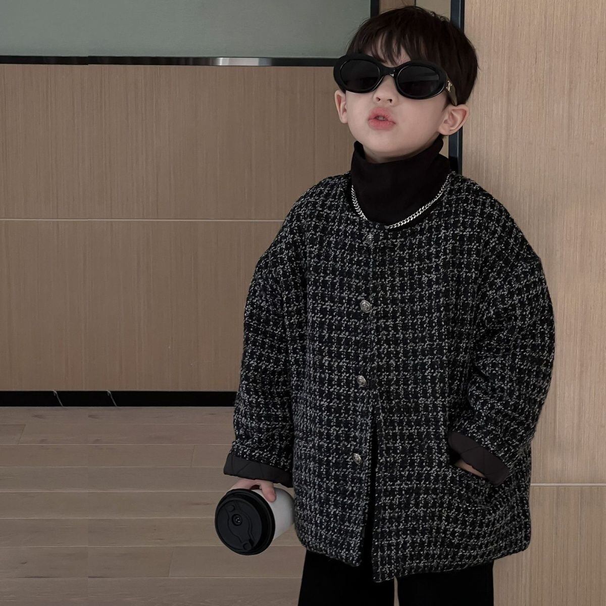 Saturday 90-140cm キッズ 男の子 裏起毛ツイードジャケット おしゃれ男の子服 小学生 中学生 ガールズ子供服 韓国系子供服 sk23100902