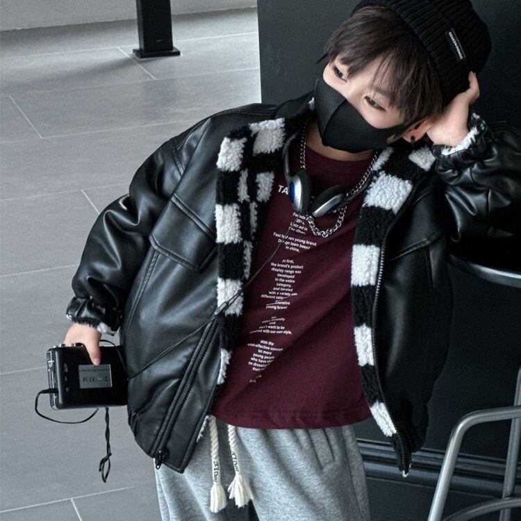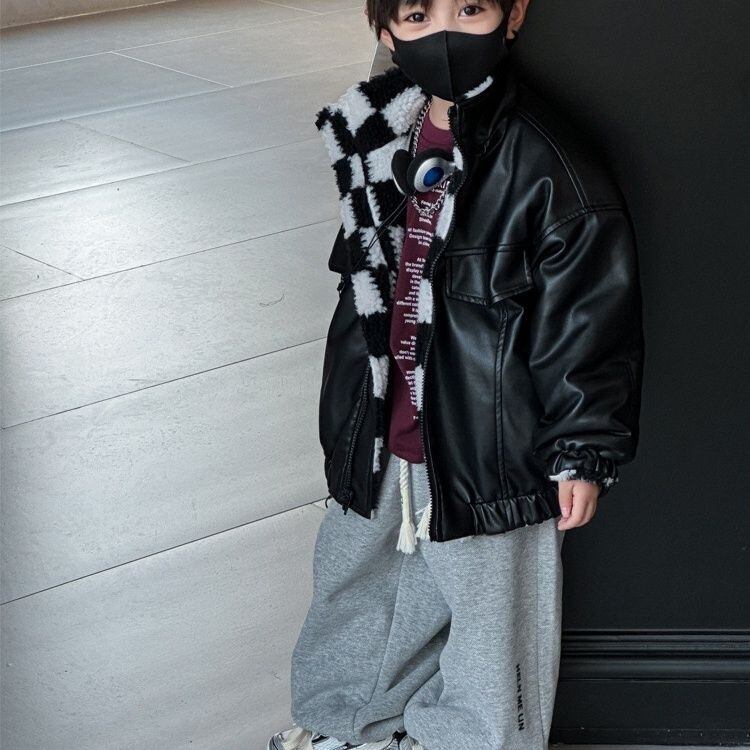 Saturday 90-140cm キッズ 男の子 フリースリバーシブルPUレザージャケット おしゃれ男の子服 小学生 中学生 ガールズ子供服 韓国系子供服 sk23101101