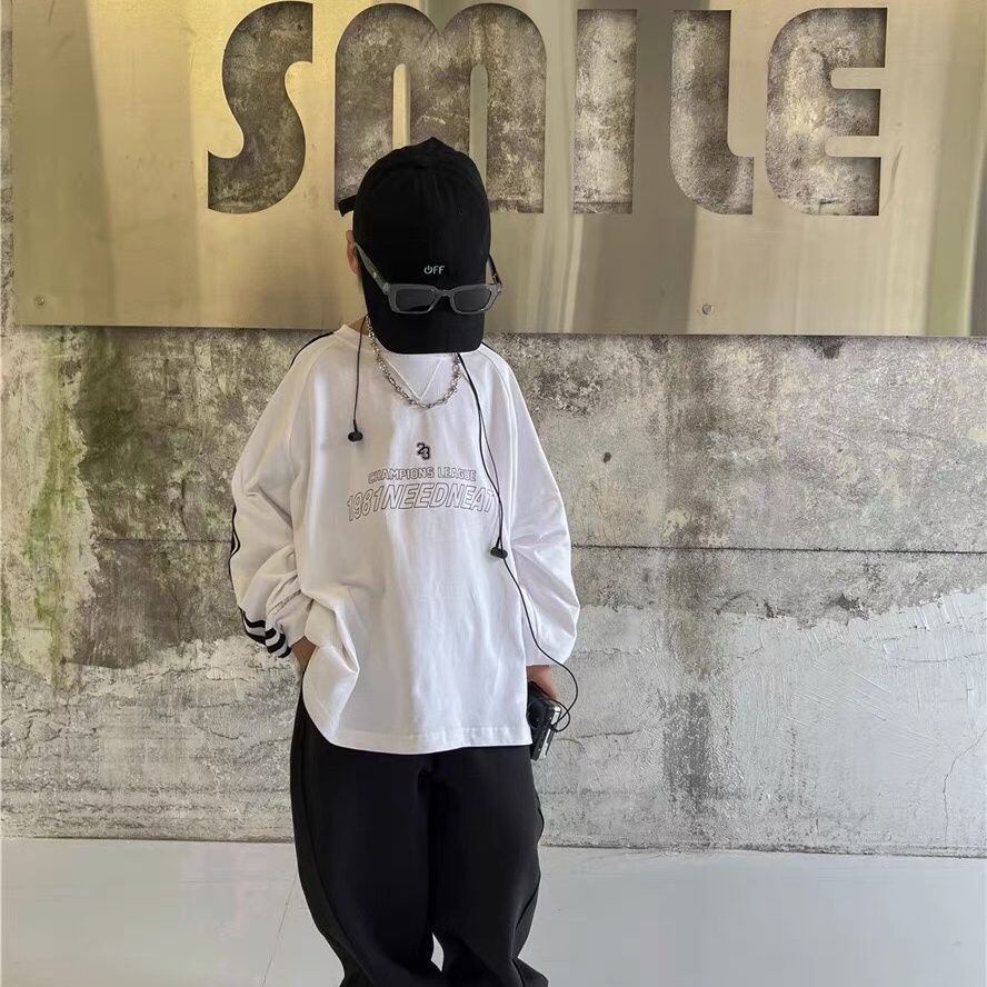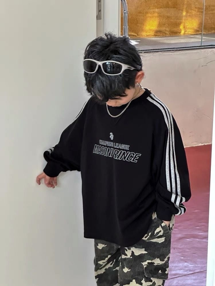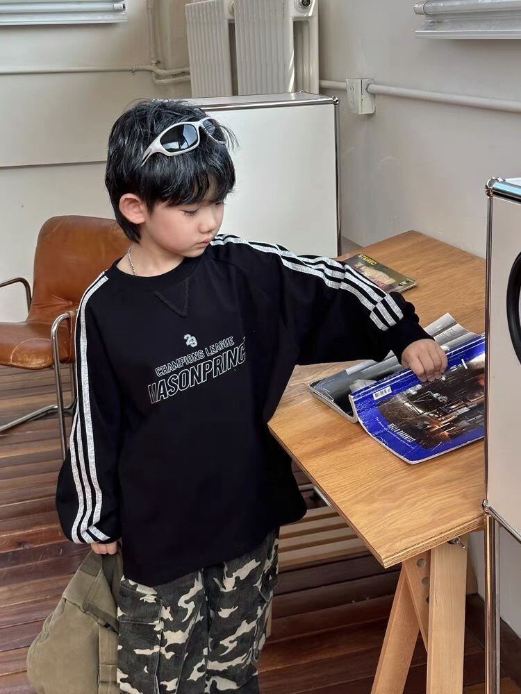 Saturday 【2024 春コレクション】キッズ 90-150cm キッズ 袖ライン入り綿100%プルオーバー 男の子 おしゃれ男の子服 小学生 中学生 ボーイズ子供服 韓国系子供服 sk24041201