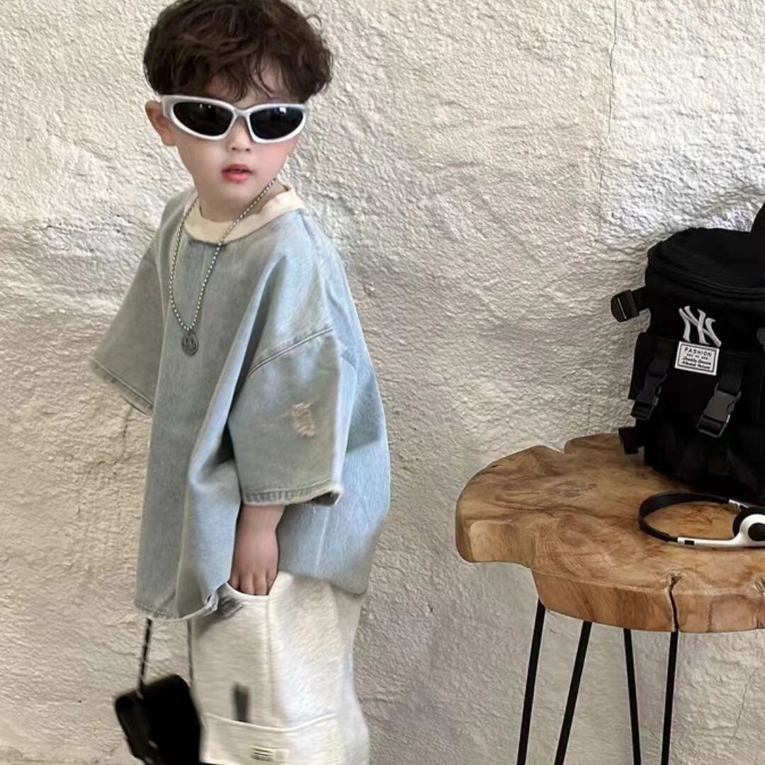 Saturday 【2024 春コレクション】キッズ 90-140cm キッズ デニム 半袖Tシャツ 男の子 おしゃれ男の子服 小学生 中学生 ボーイズ子供服 韓国系子供服 sk24041701