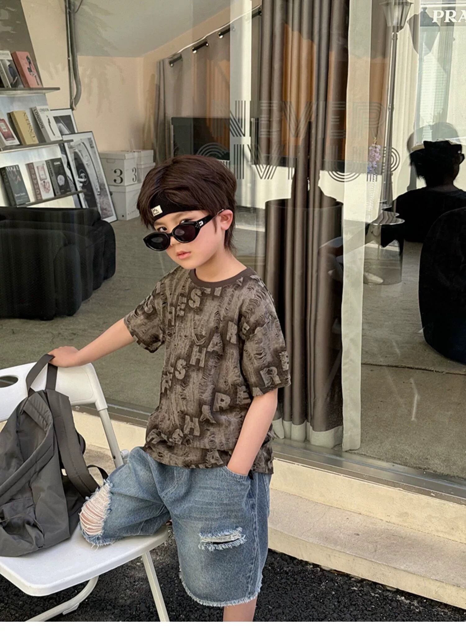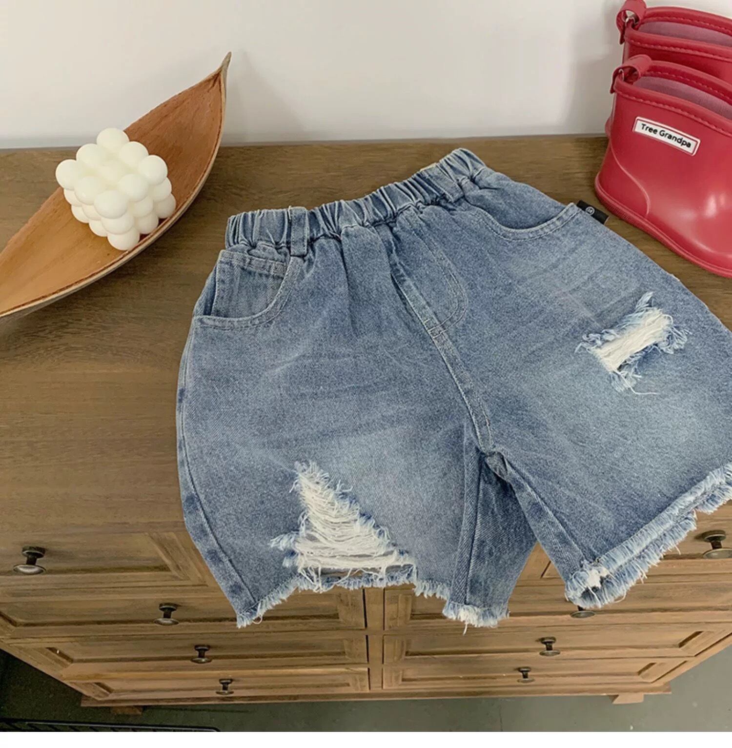 Saturday【2024 夏コレクション】キッズ 100-150cm キッズ 男の子 ダメージハーフデニムパンツ 綿100% 男の子 おしゃれ男の子服 小学生 中学生 ボーイズ子供服 韓国系子供服 sk24050601