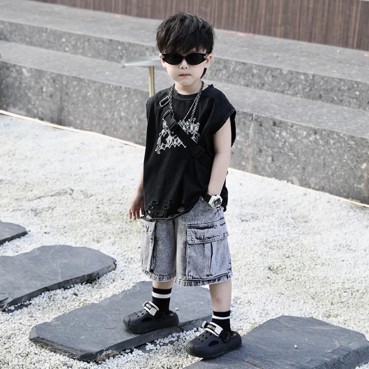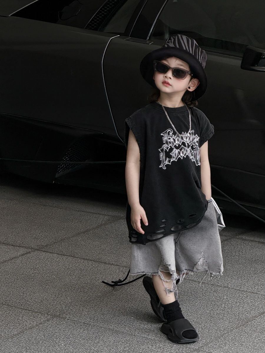 Saturday【2024 夏コレクション】キッズ 90−140cm キッズ 男の子 ダメージタンクトップ 男の子 おしゃれ男の子服 小学生 中学生 ボーイズ子供服 韓国系子供服 sk24060301