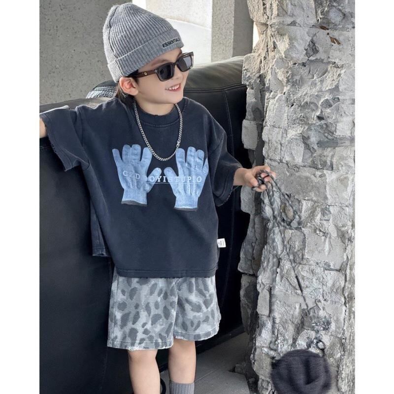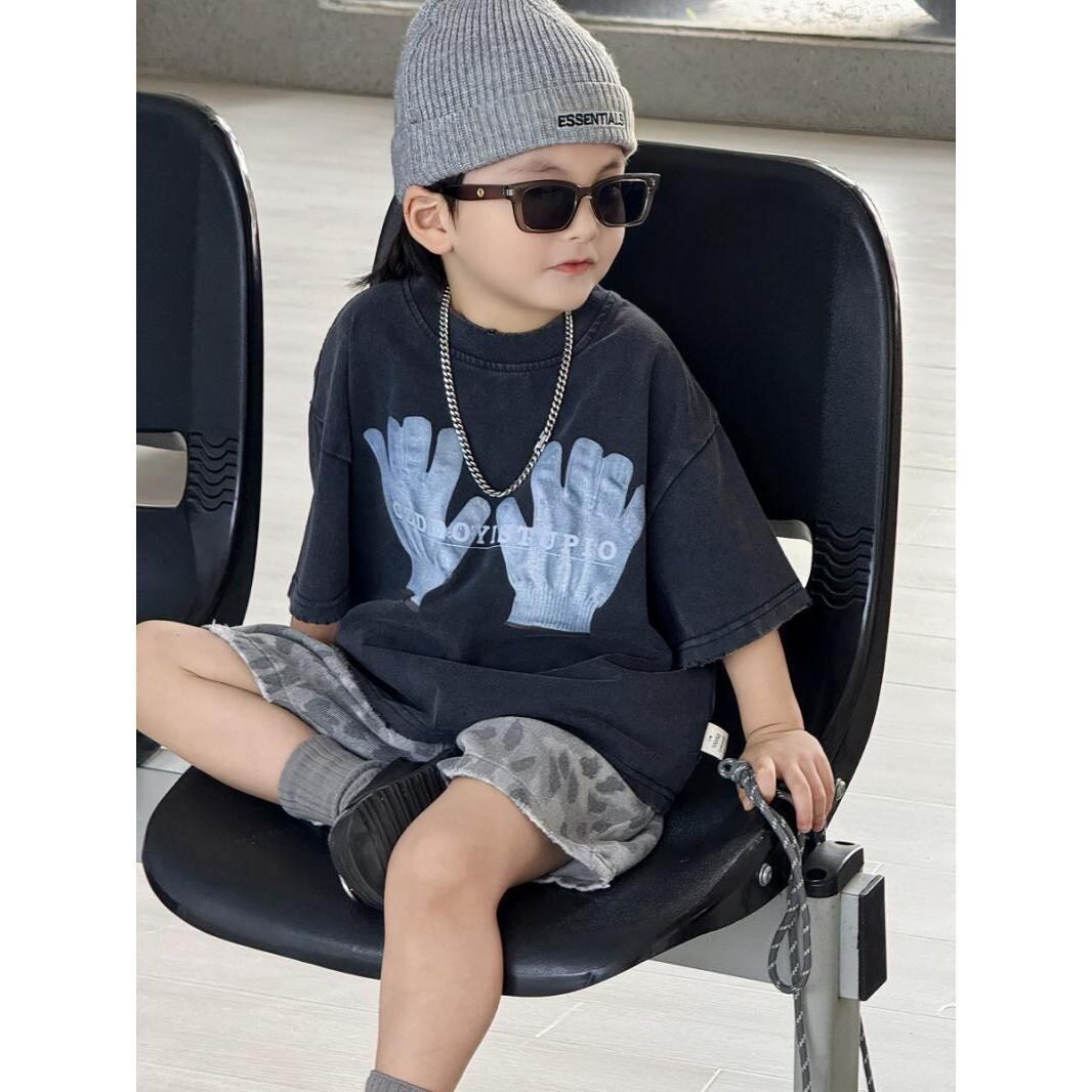 Saturday【2024 夏コレクション】キッズ 90−140cm キッズ デニム プリント半袖Tシャツ 男の子 おしゃれ男の子服 小学生 中学生 ボーイズ子供服 韓国系子供服 sk240061201